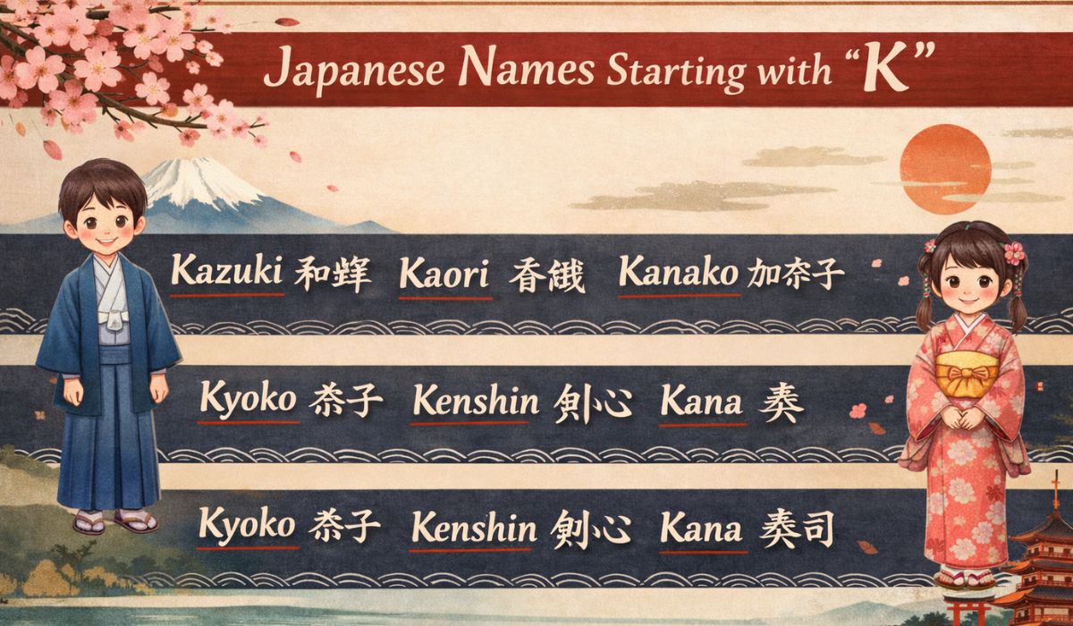 Japanese names can also be written in hiragana (soft, flowing script) or katakana (used for foreign words or modern names), giving parents flexibility in style and pronunciation. The letter “K” often introduces names that feel strong, harmonious, and memorable. Many of these names are inspired by nature, seasons, virtues, or poetic imagery, which is why Japanese names that start with K are widely appreciated worldwide.